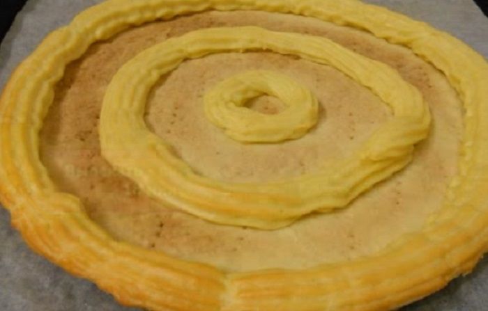 - 150 г готового слоеного теста (для подложки)