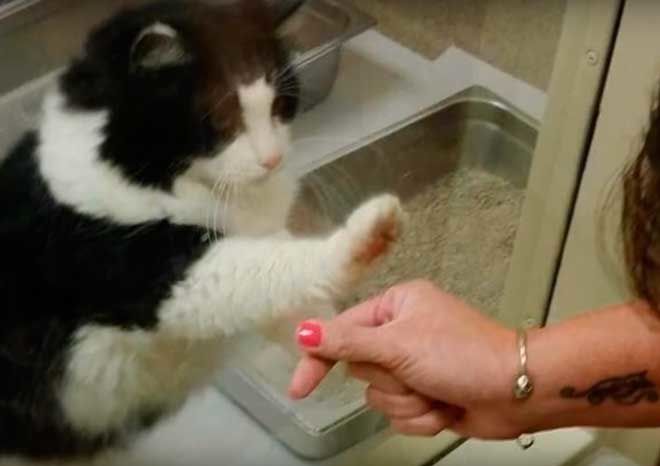 Хлоя, так зовут эту красотку отчаянно нуждалась в человеческом тепле. Поэтому, к каждому, кто проходил мимо ее вольера, она протягивала свою лапку. Это было невероятно трогательно и она сумела растопить сердце одной женщины, пришедшей в приют за новым другом.