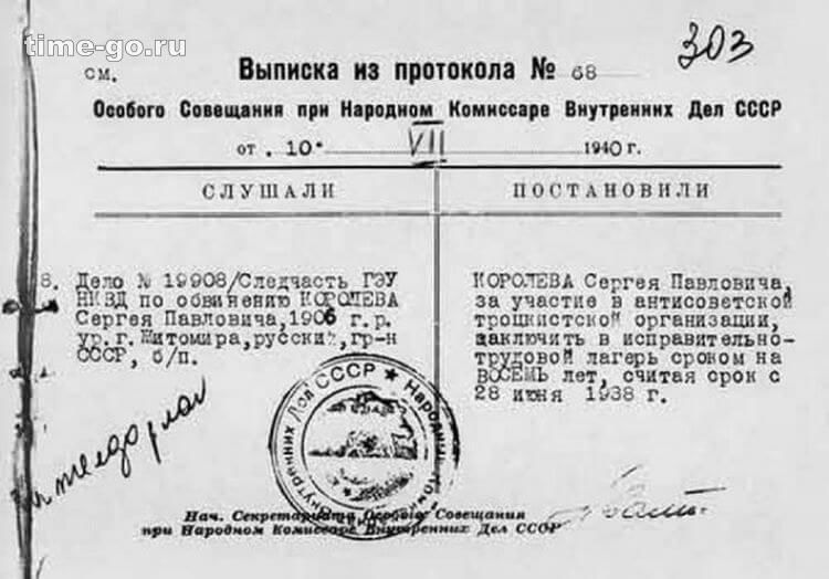 Будущего авиаконструктора приговорили к 10 годам лагерей. Он отправится на Колыму, на золотой прииск Мальдяк. Ни голод, ни цинга, ни невыносимые условия существования не смогли сломить Королева — свою первую радиоуправляемую ракету он рассчитает прямо на стене барака.