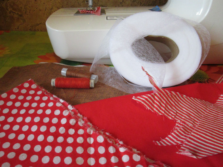 Для крылышек между двумя прямоугольными кусочками ткани размером около 1,5 на 3 дюйма (3 на 6 сантиметров) проложить отрезок клеевой паутинки такого же размера, и весь этот «бутерброд» хорошо проутюжить.