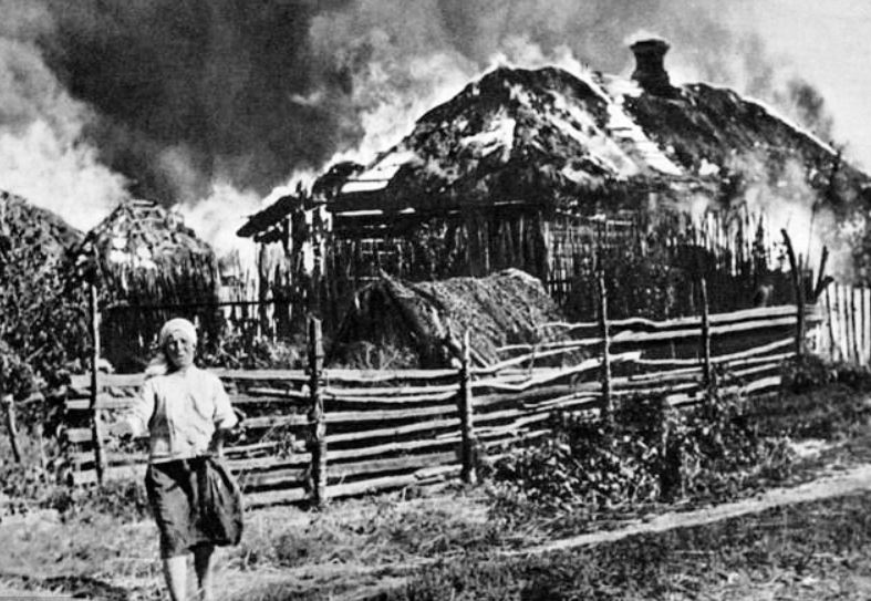 Немец — народ основательный. То, в чем они не видели пользы — подлежало уничтожению. Причем, часто поджигательство они сами фиксировали на фото. Многие солдаты вермахта были крестьянами или рабочими до призыва на военную службу. Вряд ли в Европе им приходилось сталкиваться такими масштабными разрушениями. Наверное, определенную роль играло и упорное сопротивление частей Красной Армии, попавших в окружение и не желавших сдаваться. Впрочем, русских планировалось использовать в качестве рабов, а рабам владеть имуществом не полагалось. Немцы с удовольствием фиксировали результаты своих действий на кино- и фотопленку. Часто команды карателей, в чьи обязанности входило и уничтожение лишних населенных пунктов, формировались из числа предателей. Дома предавались огню при малейшем подозрении в связи с партизанами. Впрочем, практиковалось и наказание «первых встречных». Так, за одного убитого партизанами солдата расстреливались 10 случайных гражданских лиц. Возможно, одной из целей сжигания лишних домов, являлась борьба с подпольем, которое могло использовать дома эвакуированных семей. Сжигались также дома жителей, чьи родственники служили в Красной Армии.Все дома в деревнях и селах в то время были деревянными. Поджог одного дома нередко приводил к тому, что сгорала вся деревня.